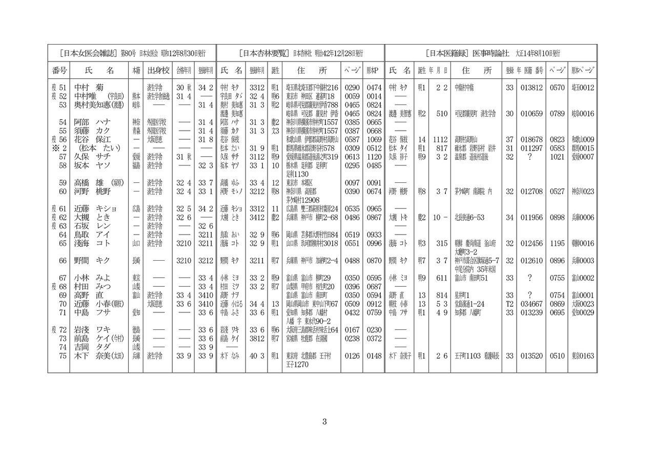 [明治時代の女医:250名]p1/11~p11/11