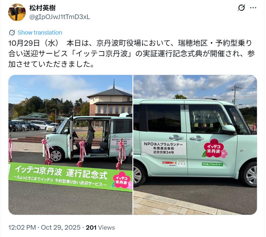 瑞穂地区・「イッテコ京丹波」の実証運行記念式典:2025/10/29