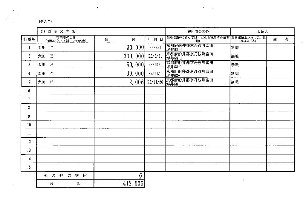 太田 匠 30,000 R3/11/1 京丹波町富田坪井 無職