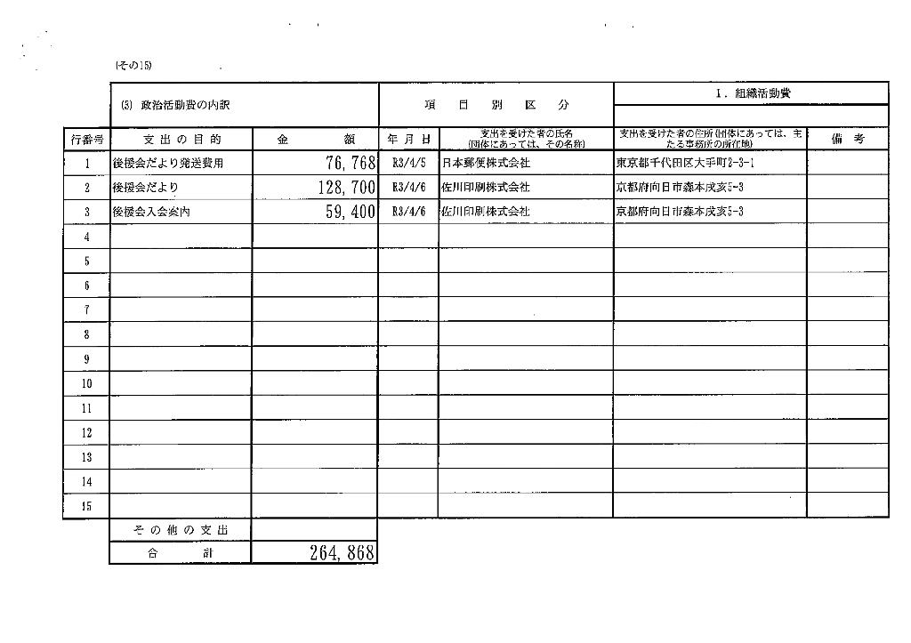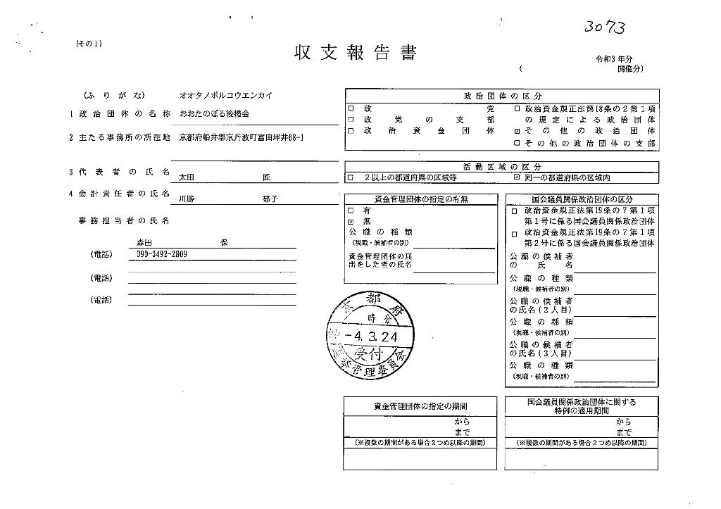 収支報告書 令和3年分 受付番号3073