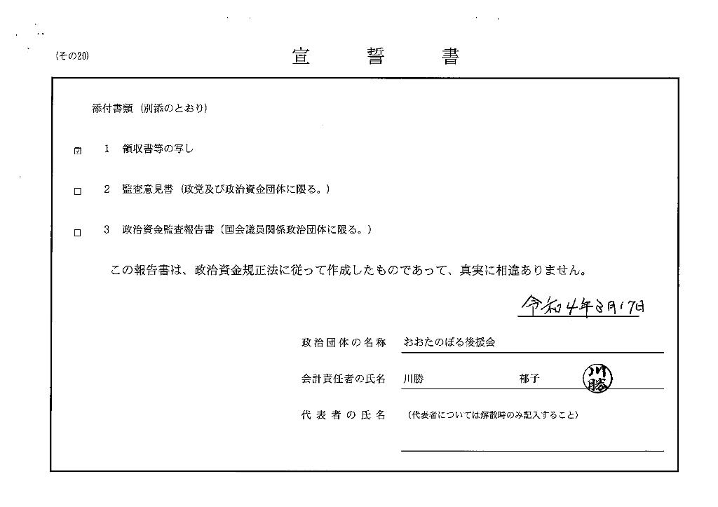 《おおたのぼる後援会:京丹波町富田》収支報告書 令和3年分