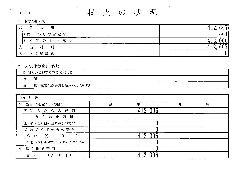 収支報告書 令和元年分 受付番号3086