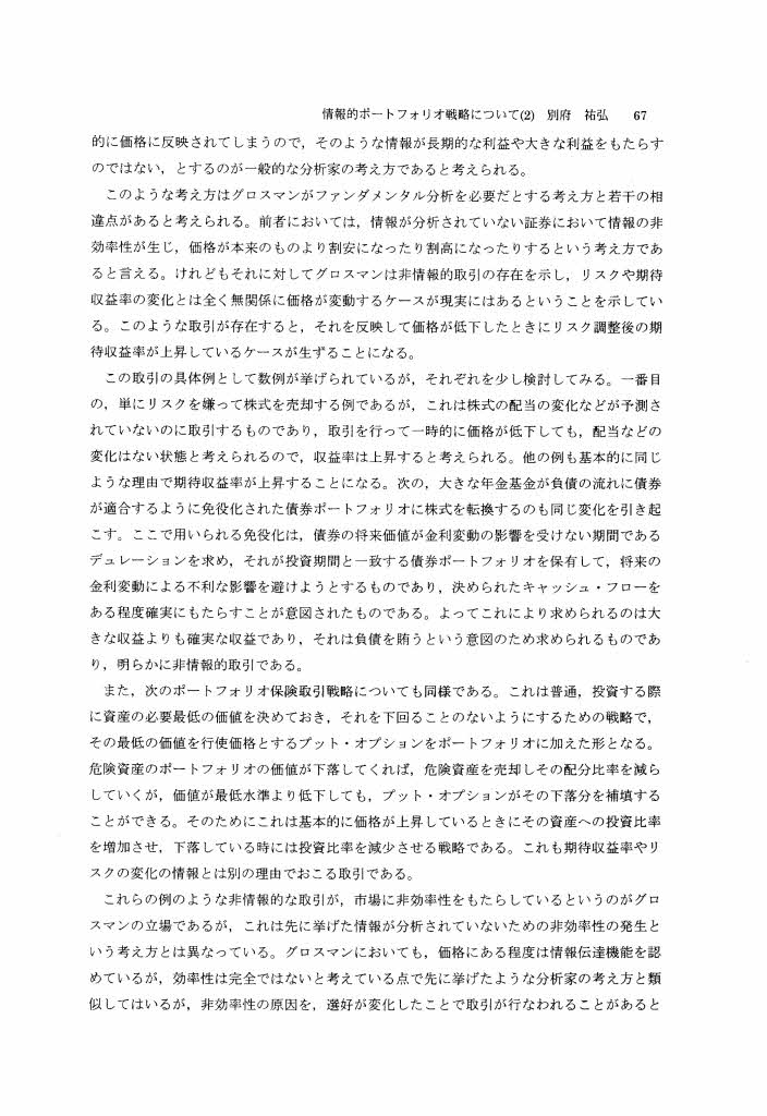 「ノーベル経済学賞」(注4)情報的ボートフォリオ戦略について(2)