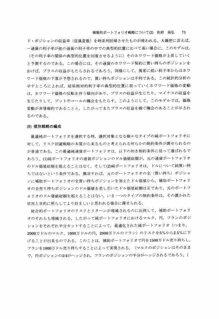 情報的ボートフォリオ戦略について(2)