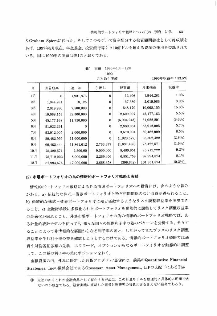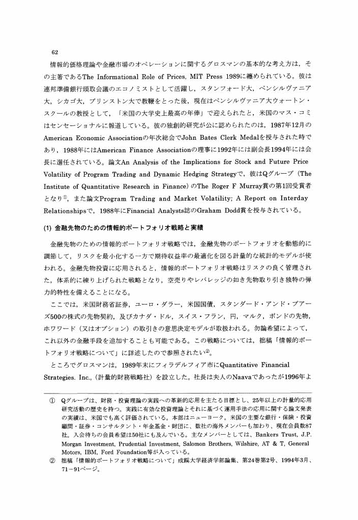 (1)金融先物のための情報的ボートフォリオ戦略と実績