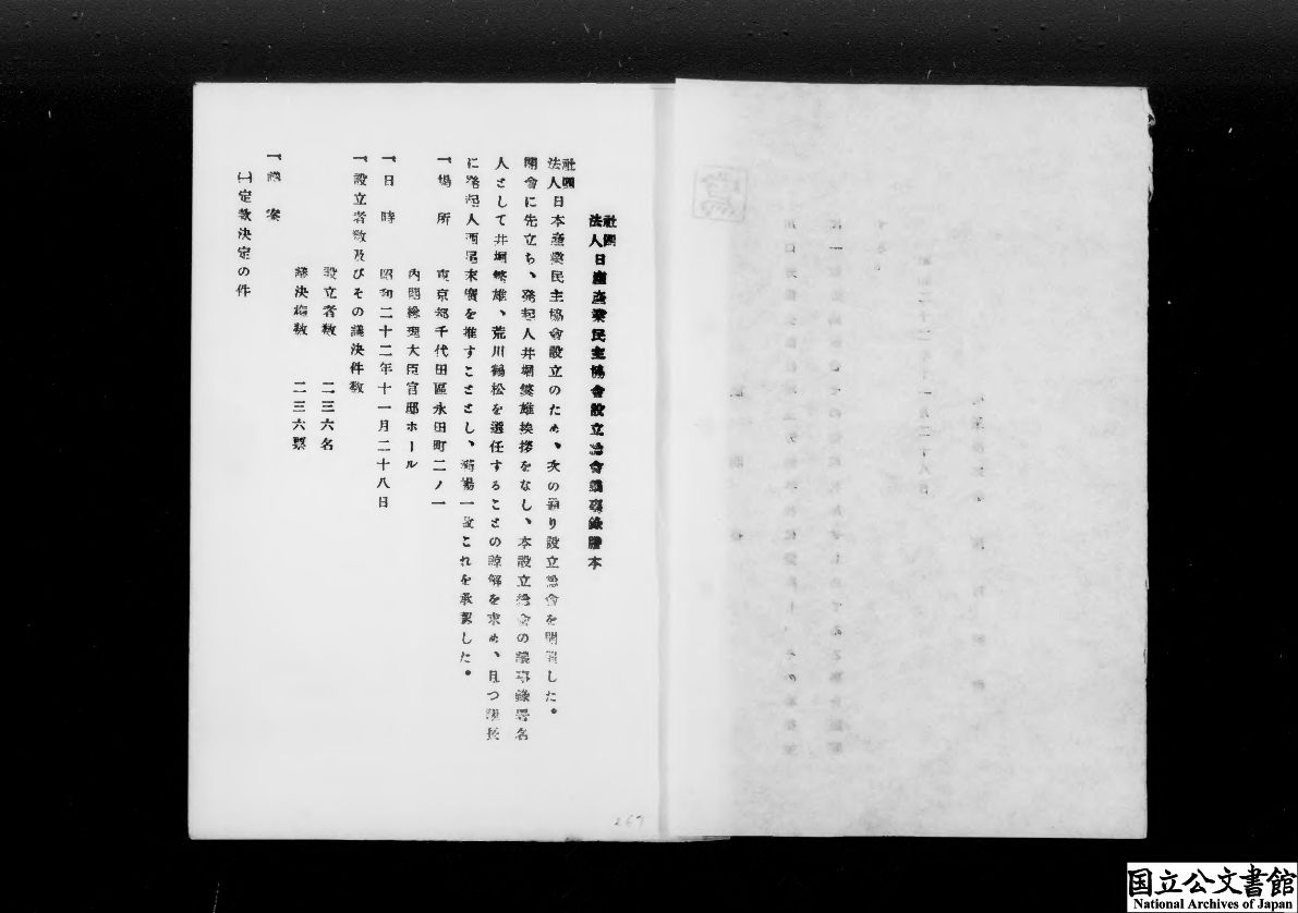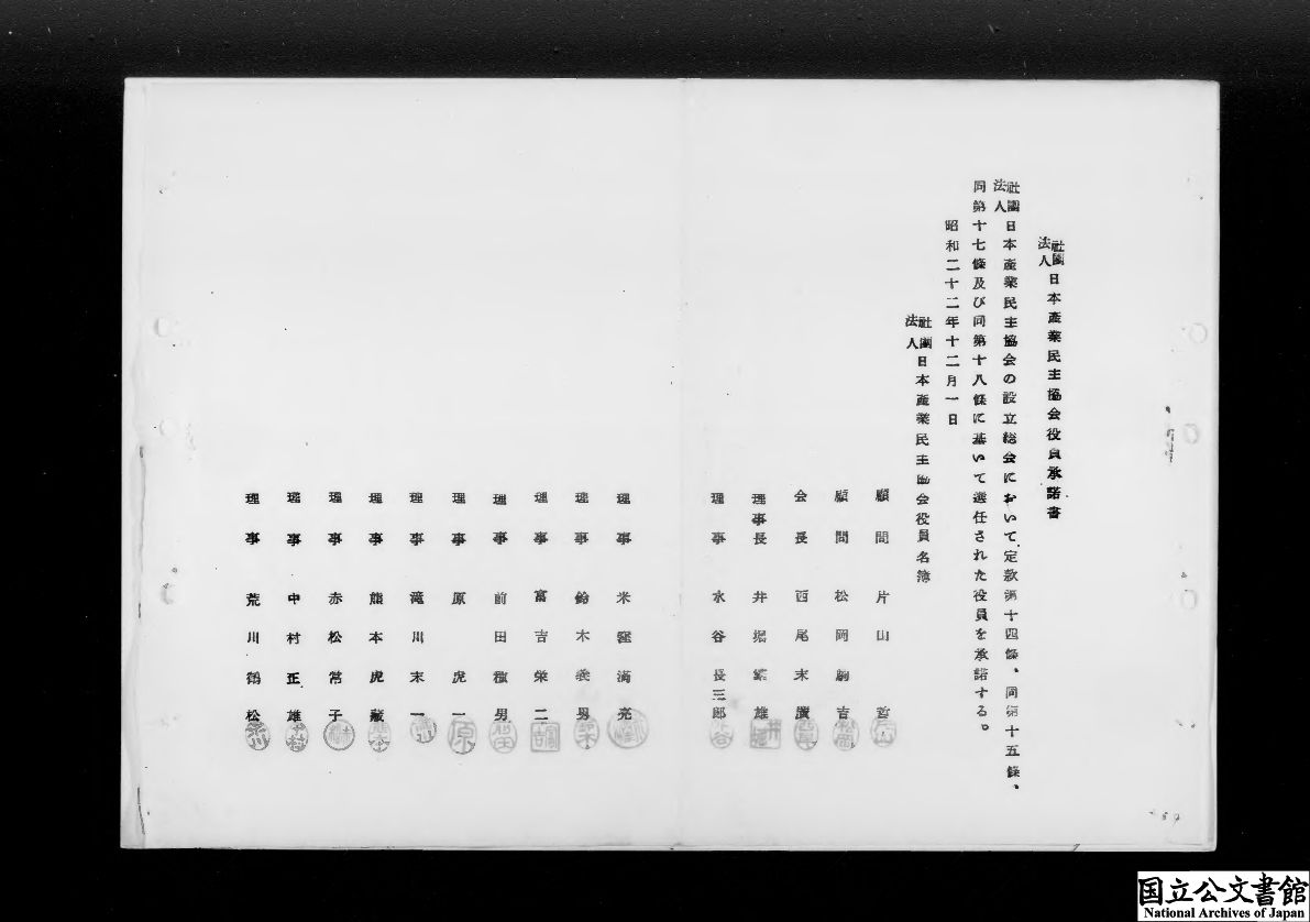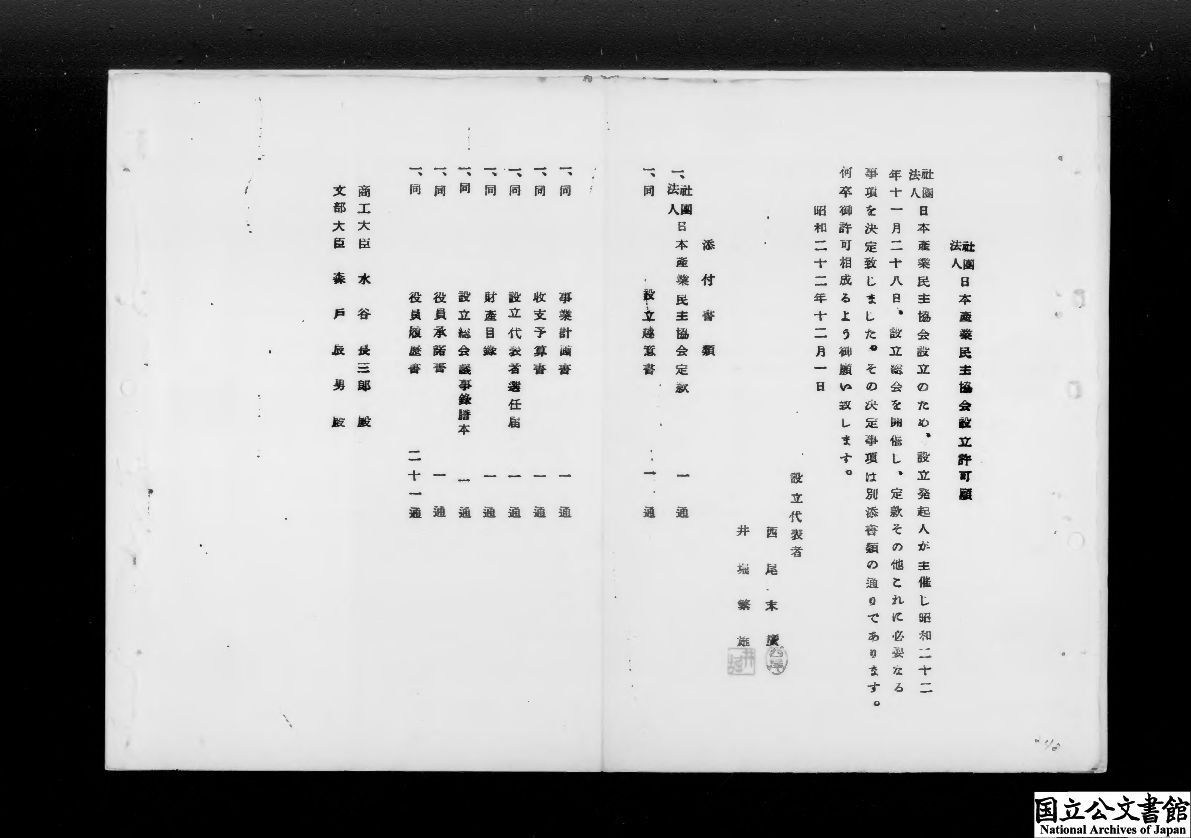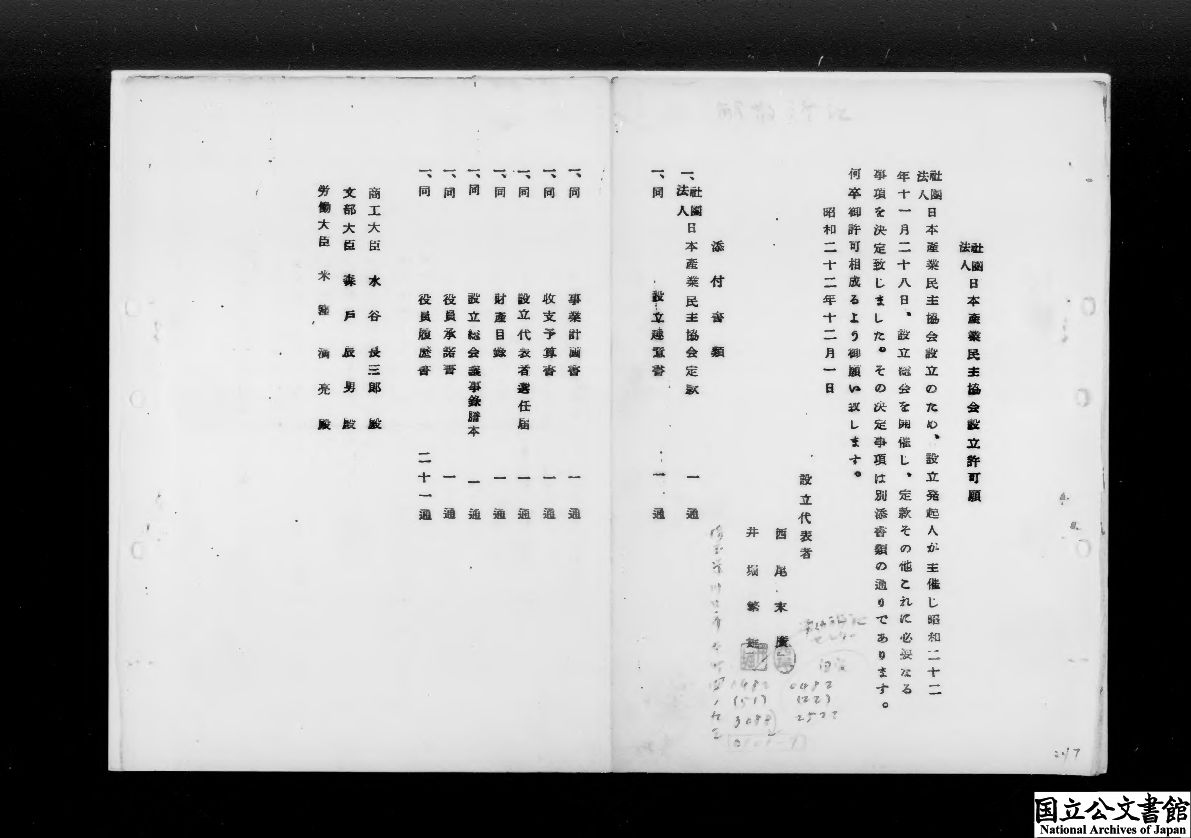 件名 1、(社)日本産業民主協会設立許可申請