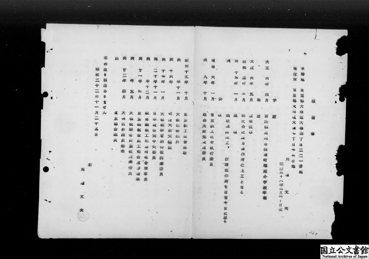 国立公文書館 通商産業省公文書集・昭和21、22年