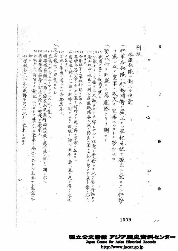 (一)軍紀風紀ノ嚴守確立ニ努ムヘシ