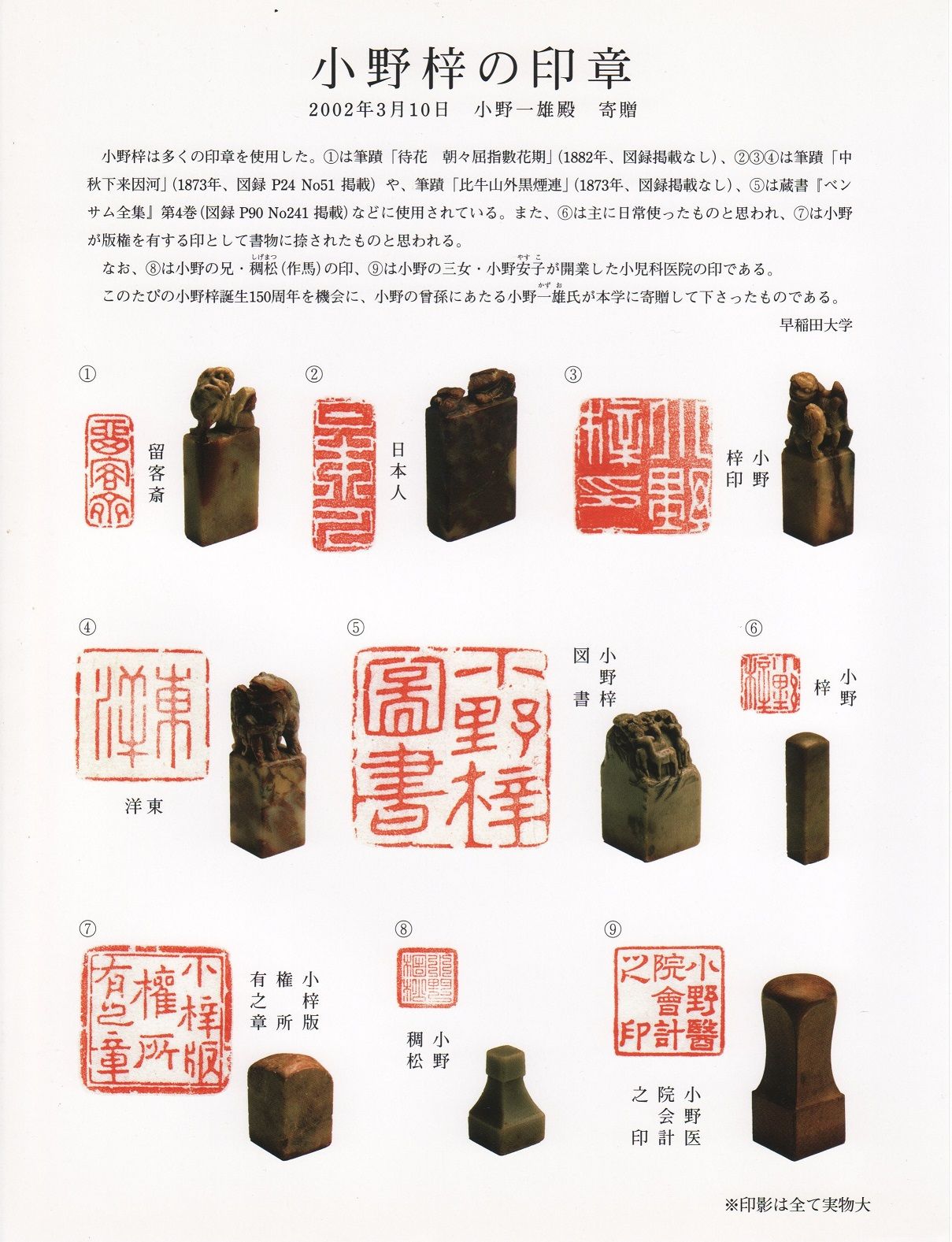 2002年3月10日 小野一雄殿 寄贈