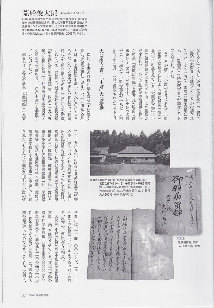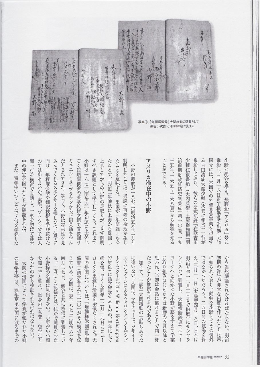 『資料紹介 小野梓留学関係資料』を発表するに及んで、