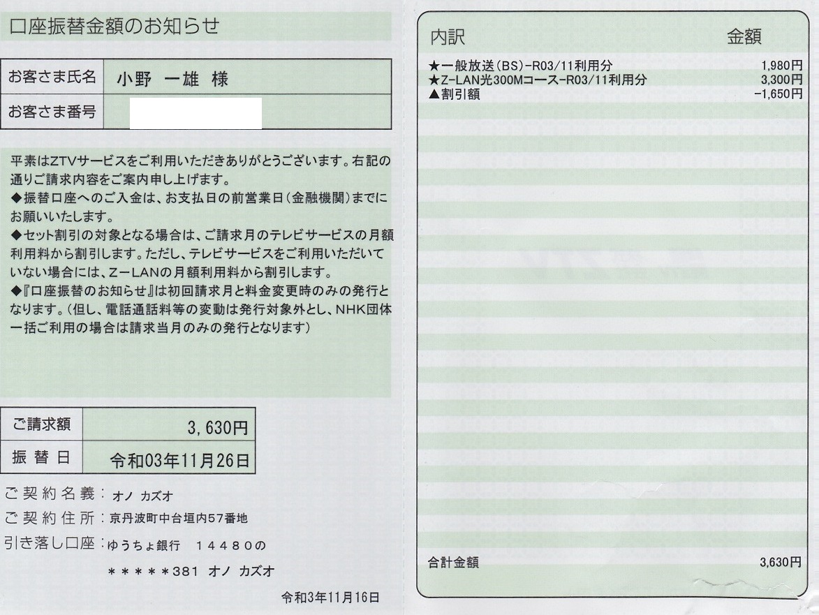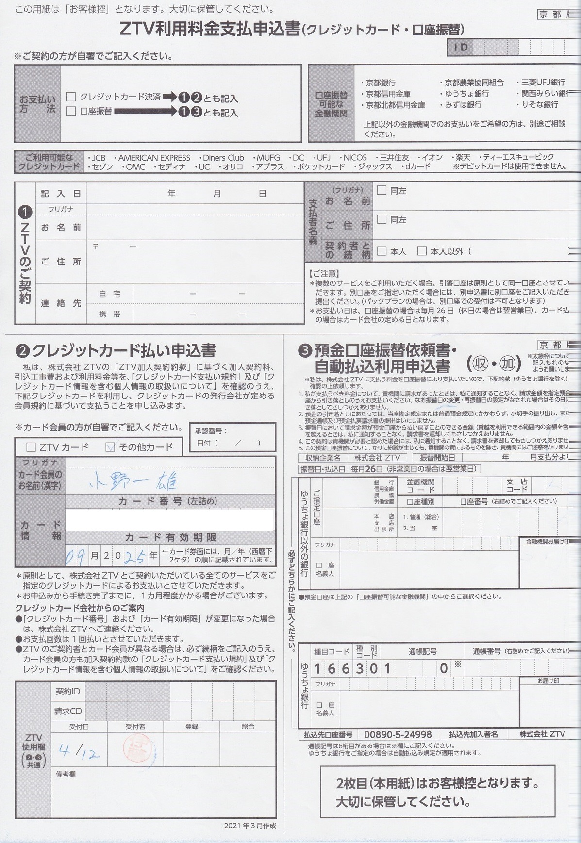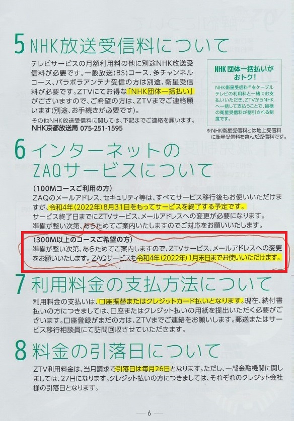 ZTV京丹波営業所(0771-82-3077)に電話を掛けた。