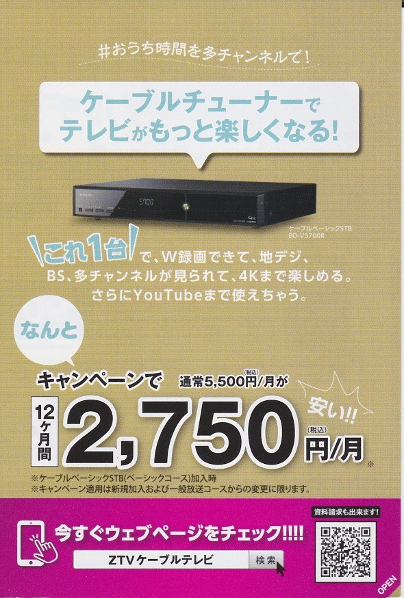 《テレビ画面のフリーズ》ZTV多チャンネル(ベーシック)