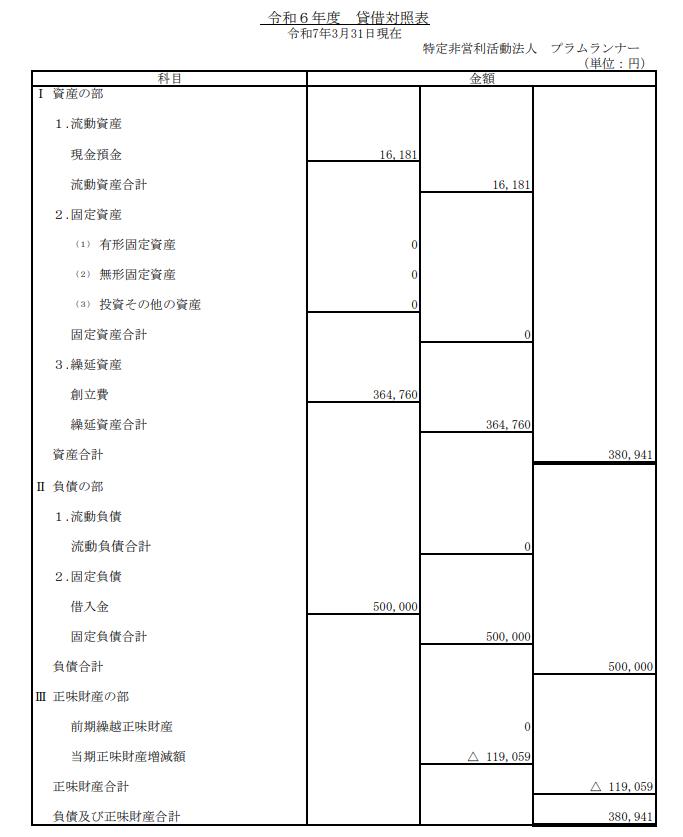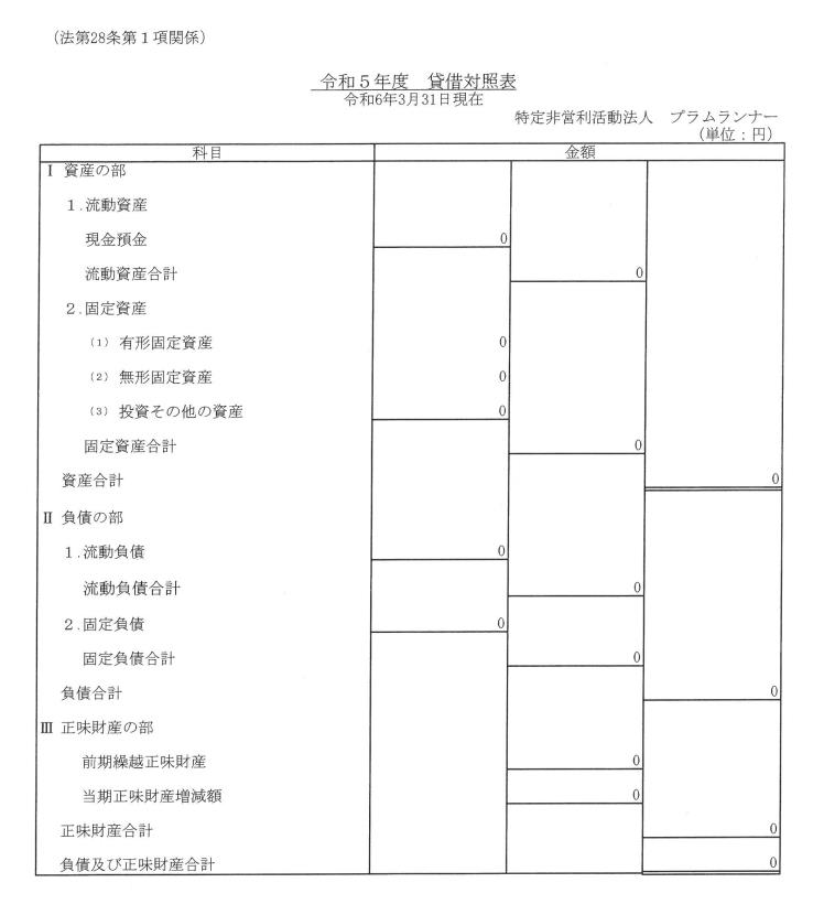 正味財産合計 0