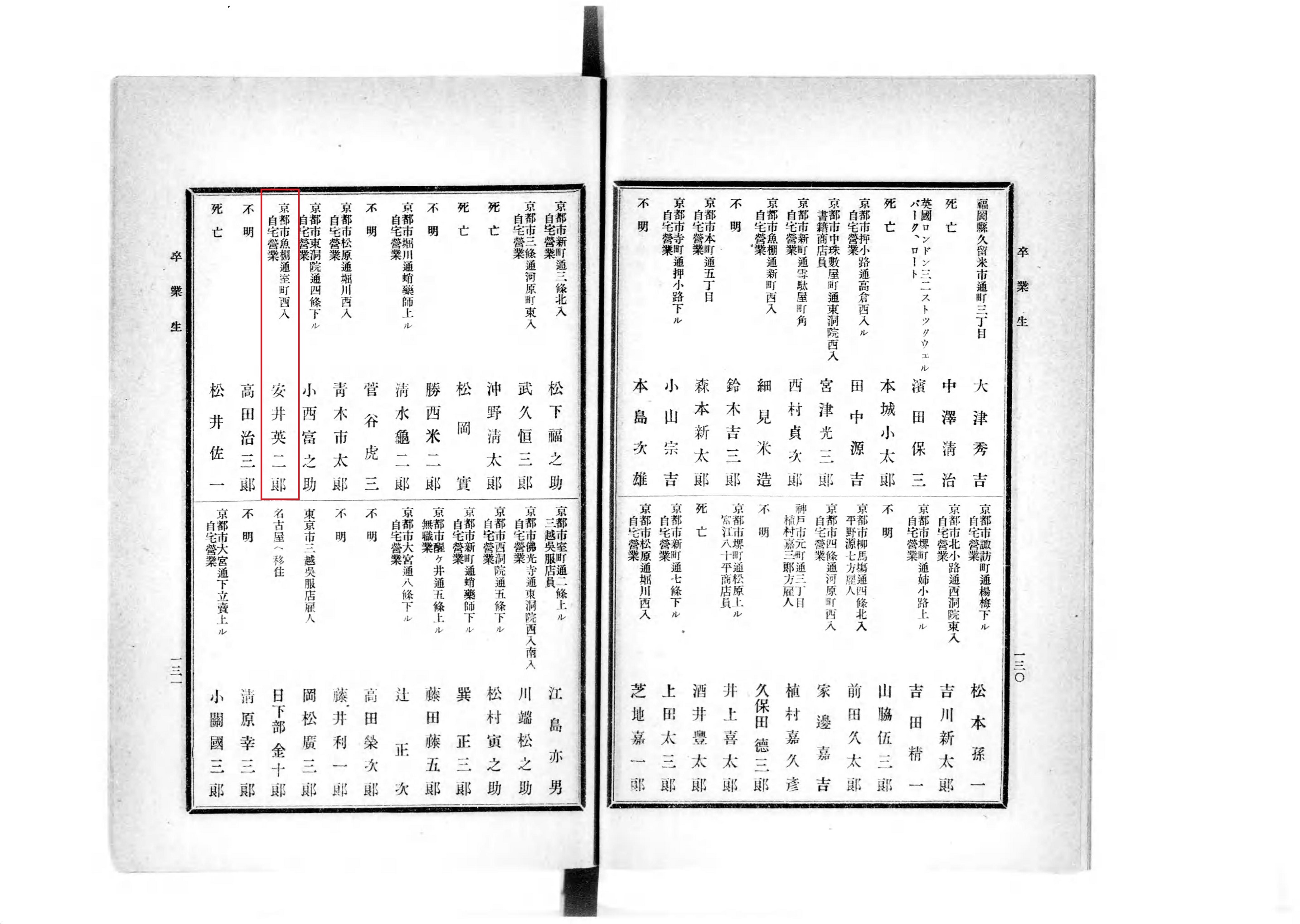 《安井英治郎商店》出身地 京都市
