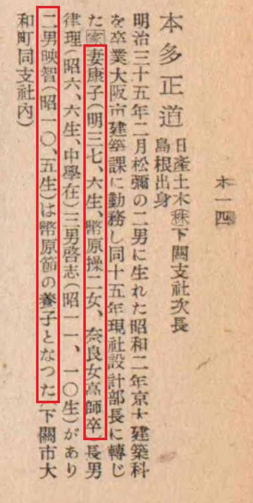 《幣原 節》【日本醫籍録. 昭和13年版 近畿版】