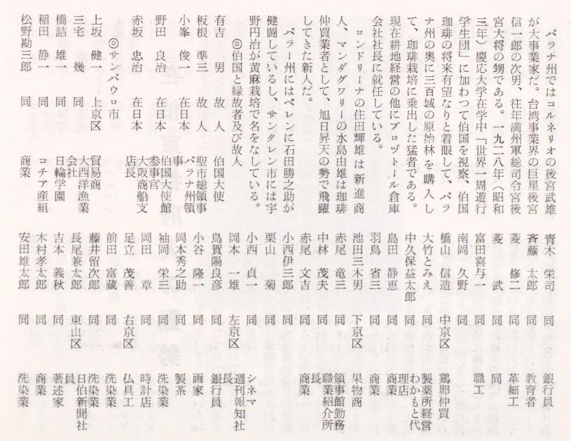 パライーバ平野在住邦人名簿