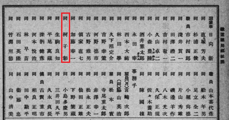 柯子彰:〔南満洲鉄道株式会社〕【社員録】